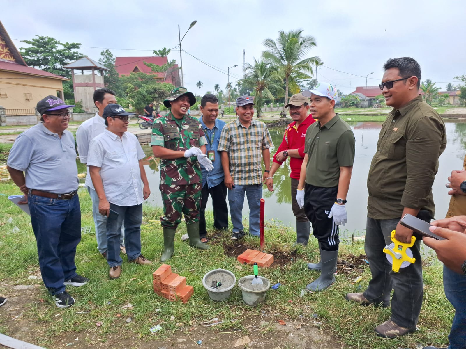 Tembilahan – Peletakan batu pertama (ground breaking) tanda dimulainya kegiatan pembangunan Ekoriparian H.R. Soebrabtas oleh PJ Bupati Indragiri Hilir didampingi oleh Dandim, Perwakilan dari Kementrian LH, Dan konsultan, Kamis 05/09/2024).